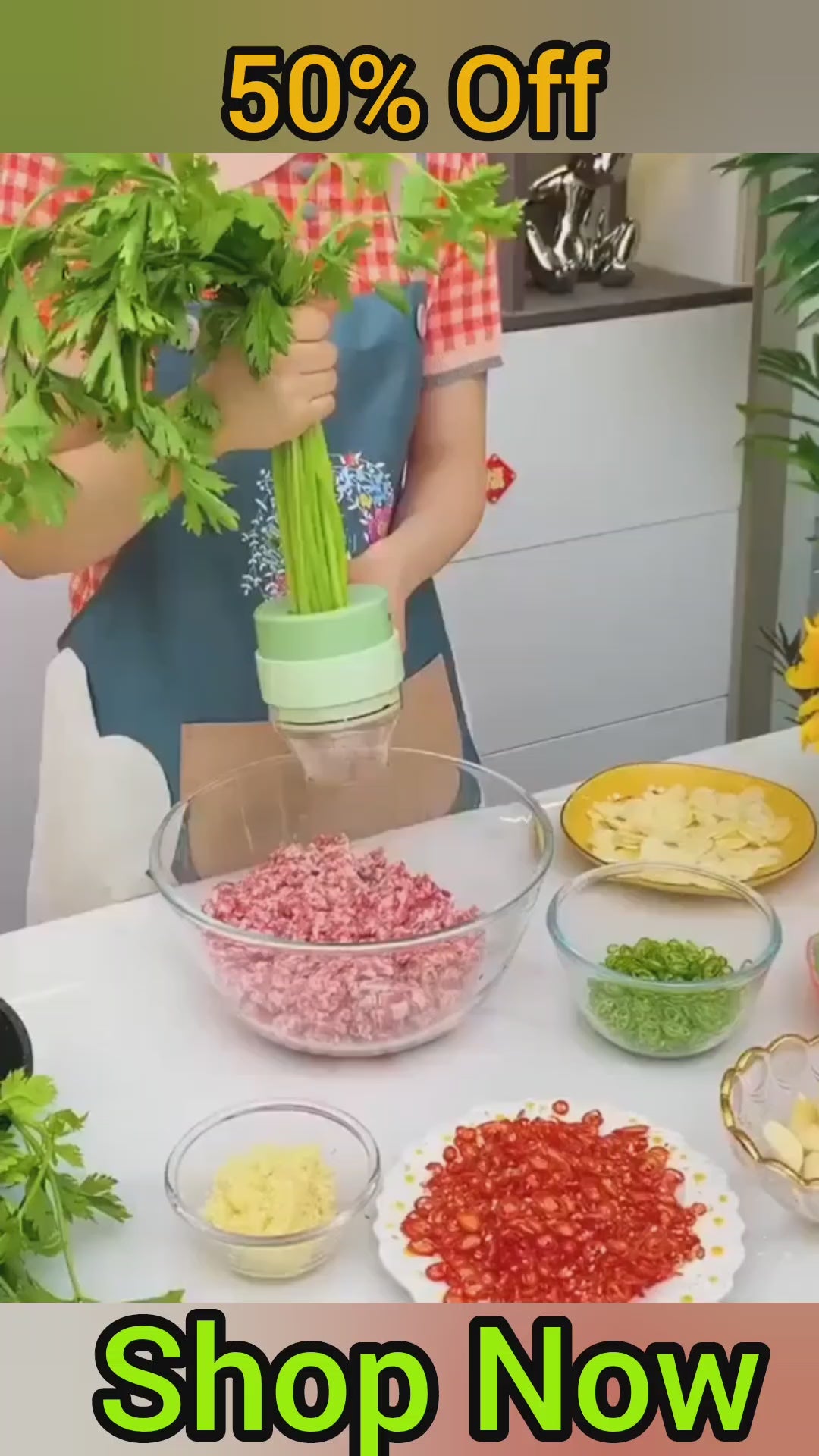 Upgrade your kitchen with the powerful 4-in-1 Portable Electric Vegetable Cutter Set – your all-in-one solution for chopping, slicing, grinding & peeling in seconds!